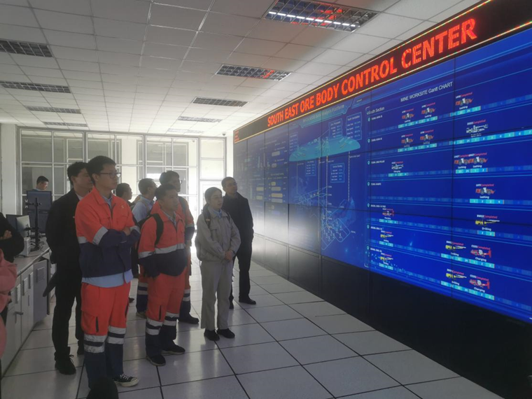 本次“聯建互助交流”活動聚焦中色非礦數字化礦山建設,與會人員現場參觀了中色非礦東南礦體地表生產集控中心建設情況、自動化出礦應用情況、以及選礦廠選礦工藝流程和設備運行情況,詳細了解了中色非礦數字化礦山建設整體情況和東南礦體自動化鏟運機系統應用情況。