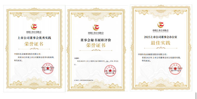 近日,中色股份在中國上市公司協(xié)會組織的權(quán)威評選中連獲“上市公司董事會優(yōu)秀實(shí)踐案例”“上市公司董事會秘書5A評級”(最高級)及“上市公司董事會辦公室最佳實(shí)踐案例”(最高級)三項(xiàng)大獎。這標(biāo)志著公司從董事會領(lǐng)航掌舵、董事會秘書核心履職到董事會辦公室專業(yè)執(zhí)行的完整治理鏈條獲得了資本市場監(jiān)管機(jī)構(gòu)與行業(yè)的高度評價,展現(xiàn)了公司治理體系和治理效能的先進(jìn)性與有效性。