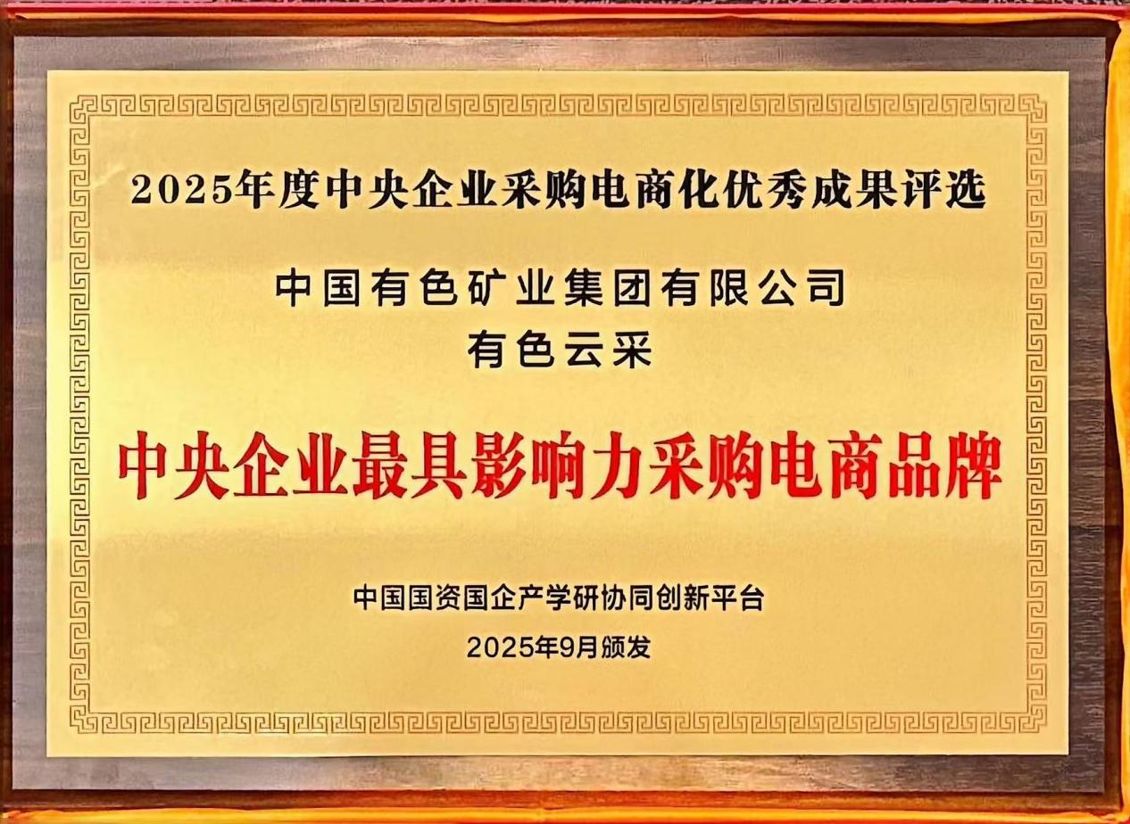 近日,中國有色集團自主建設并運營的“有色云采”電子商城在2025年中央企業(yè)采購電商化優(yōu)秀成果評選中榮獲“2025年度中央企業(yè)最具影響力采購電商品牌獎”和“2025年度中央企業(yè)電商平臺供應鏈生態(tài)建設優(yōu)秀企業(yè)獎”。這是“有色云采”電子商城在該評選中連續(xù)第三屆獲得獎項。
