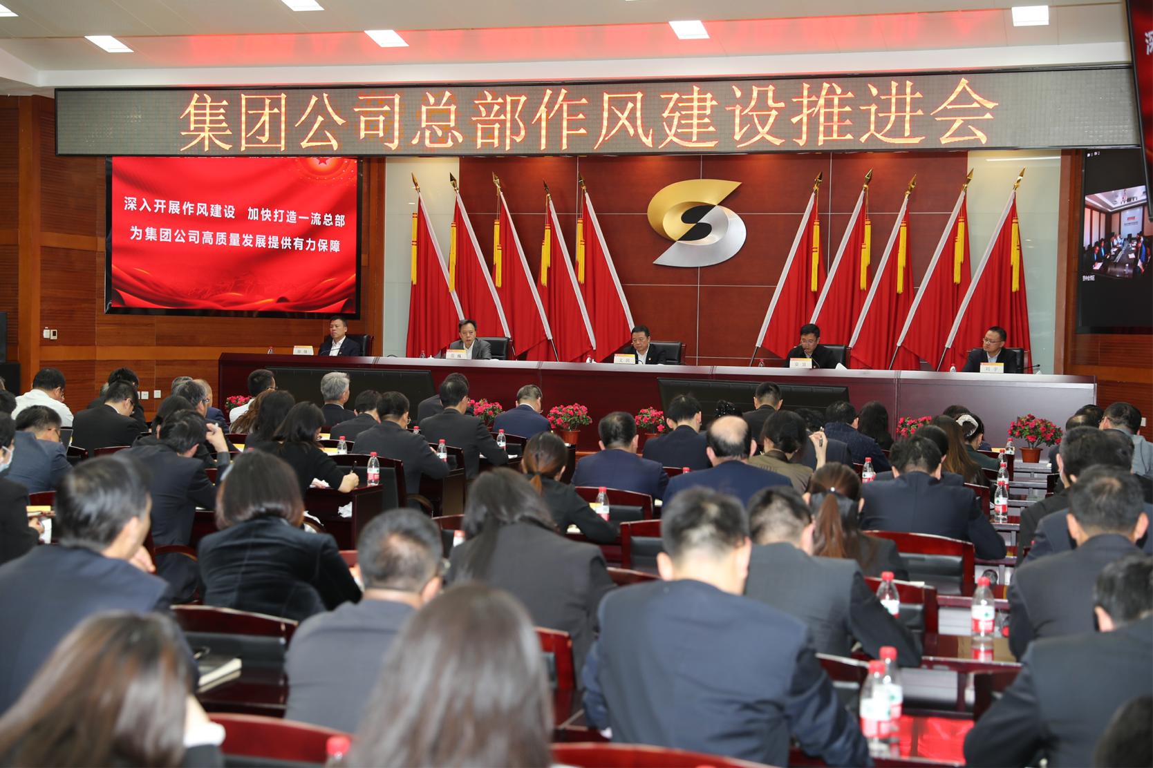 會議以現場和視頻相結合的形式召開,集團公司領導班子成員、高級管理人員和總部全體干部職工參加會議。