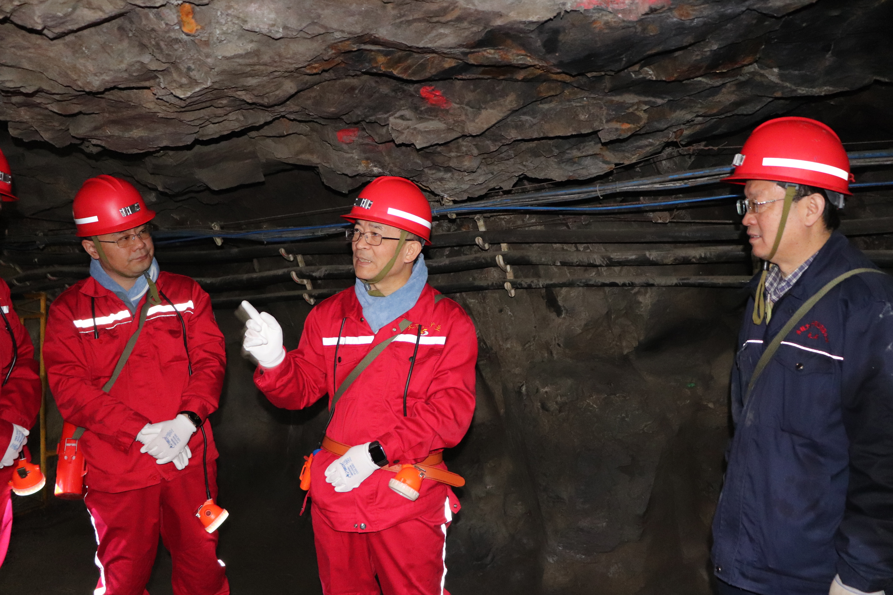 張晉軍一行實地調研了富邦銅業冶煉廠、硫酸廠、渣選廠等生產車間,深入大井子礦井下,詳細了解了企業生產工藝、設備運轉、日常管理、安全環保及采礦方法優化、新科技手段賦能探礦等情況,并主持召開工作座談會。