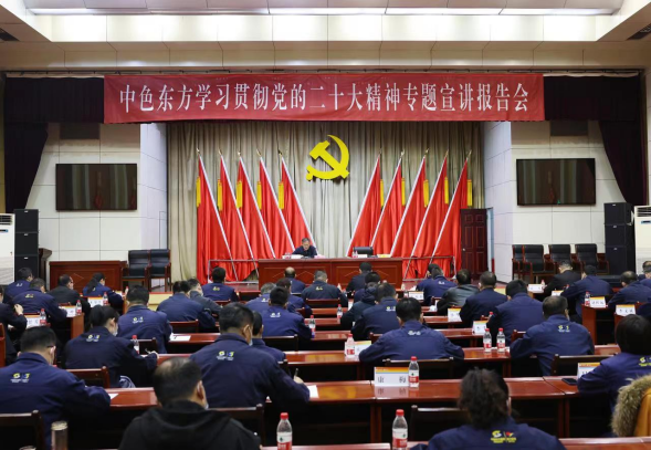 為深入學(xué)習(xí)宣傳貫徹黨的二十大精神,根據(jù)寧夏自治區(qū)黨委統(tǒng)一部署,11月17日,自治區(qū)宣講團(tuán)成員、自治區(qū)政協(xié)副主席馮志強(qiáng)在中國(guó)有色集團(tuán)出資企業(yè)中色(寧夏)東方集團(tuán)有限公司(簡(jiǎn)稱:中色東方)作黨的二十大精神專題宣講報(bào)告。中色東方黨委書記、董事長(zhǎng)李春光主持,石嘴山市政協(xié)主席魏和清出席會(huì)議。