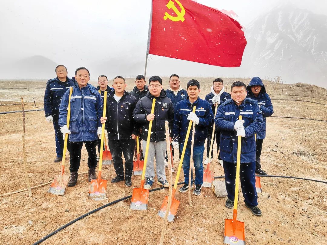 ????近日,新疆匯祥永金公司黨委與薩熱克巴依村黨支部開展共建植樹活動,爭做綠色發展的踐行者。